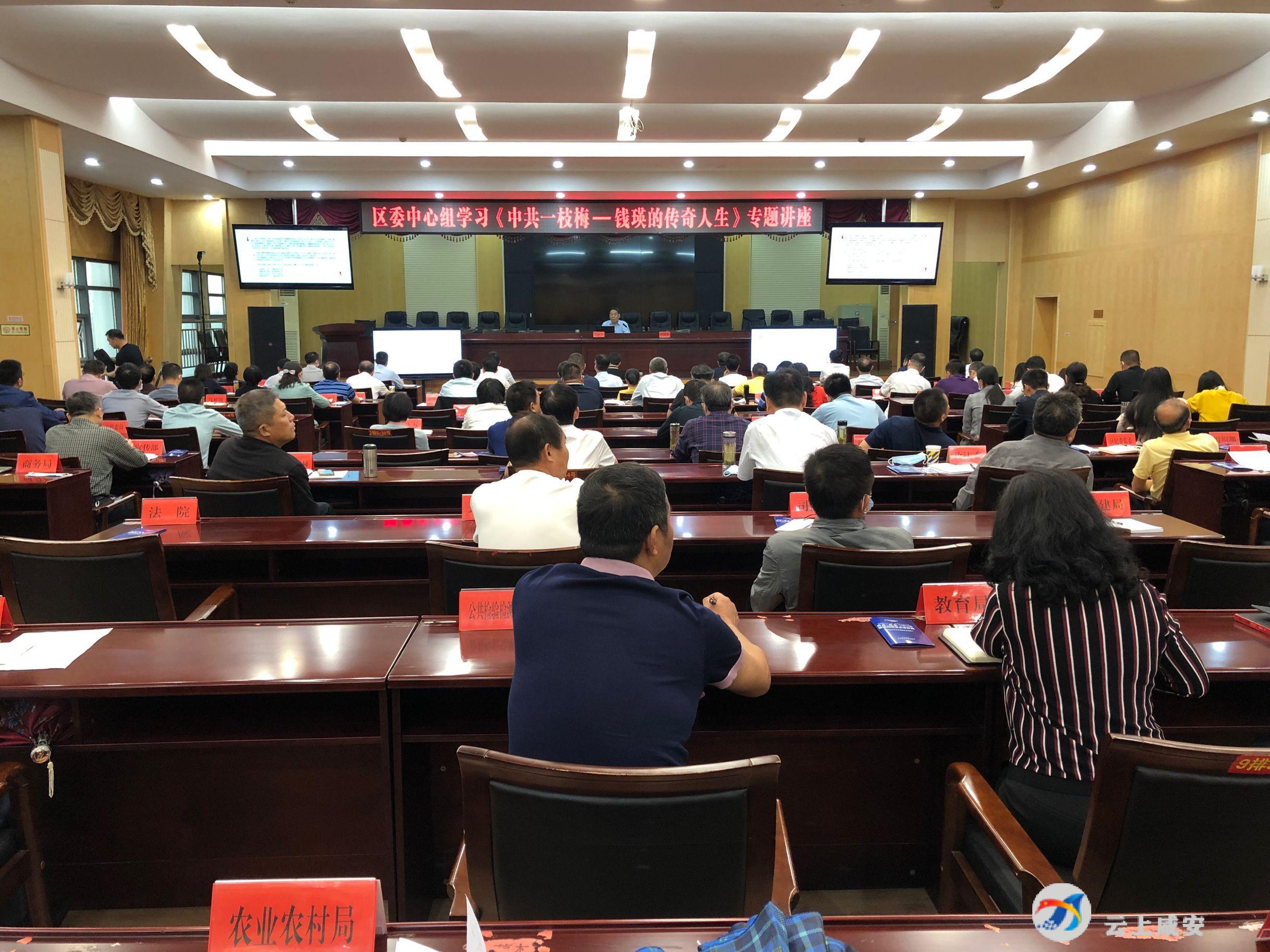 云上咸安报道(记者:夏晖)9月17日,区委中心组在区财政局附楼举办《中共一枝梅——钱瑛的传奇人生》专题讲座。市委常委、宣传部部长闫英姿出席专题讲座,区委书记李文波主持专题讲座并讲话。