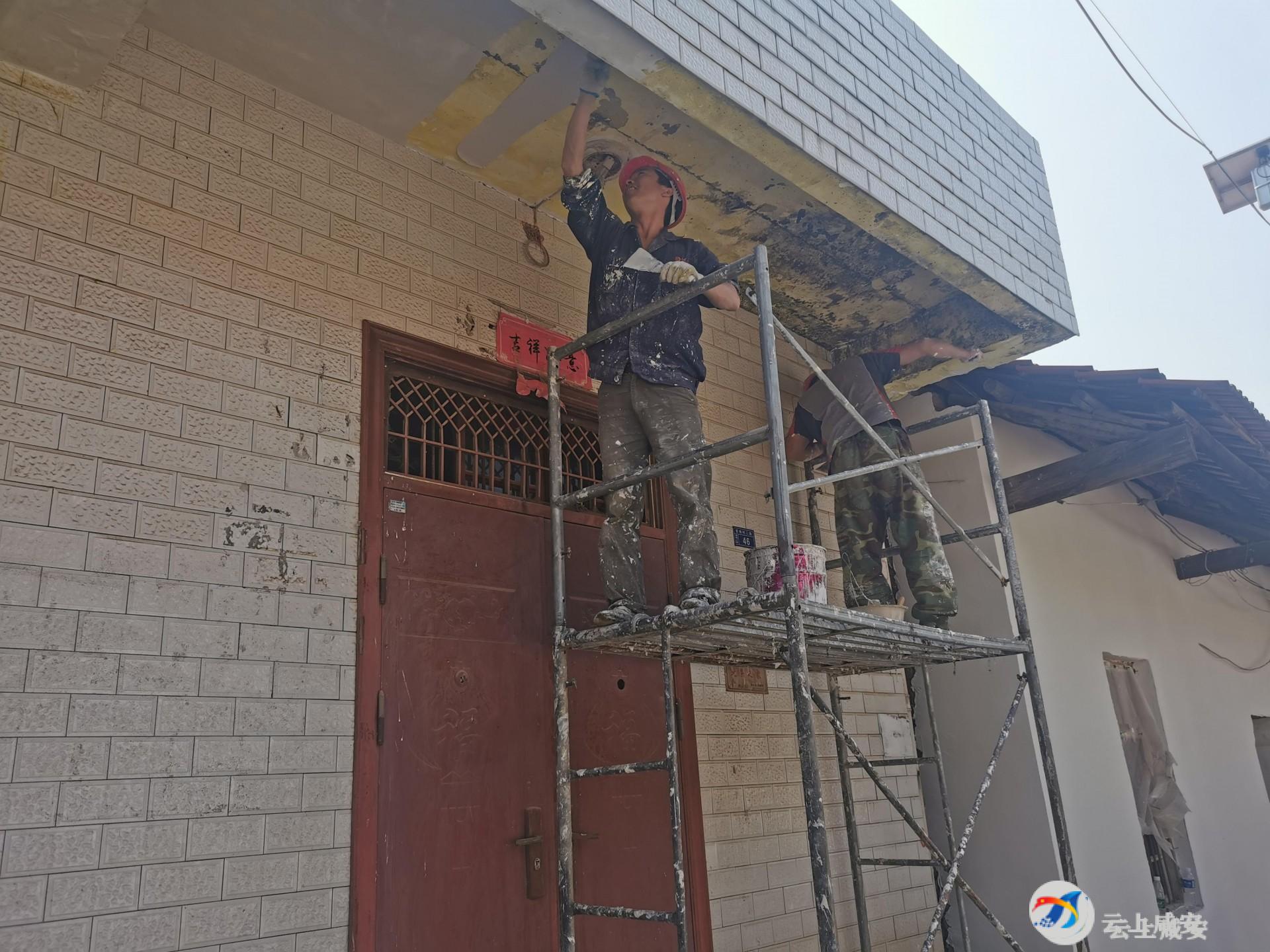 这是窑咀·渔乐湾项目快速推进的场面。当天共有近50名工人在施工现场开展立面改造、房屋修建、排水管网升级、绿道建设等工程。