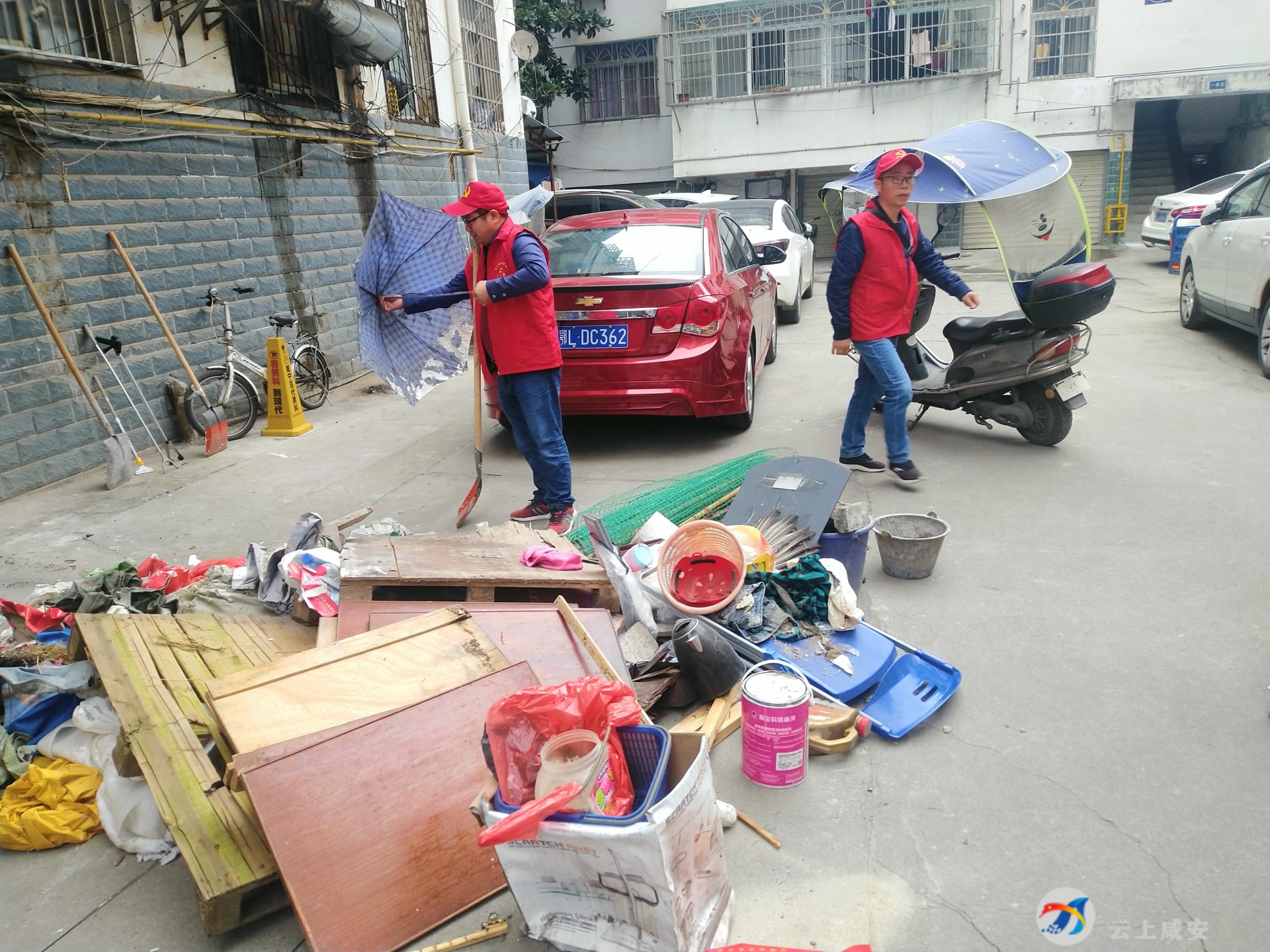 在泉塘社区村委会,社区志愿者们进行分工,清扫背街小巷、房前屋后,坚决不放过每一片垃圾。