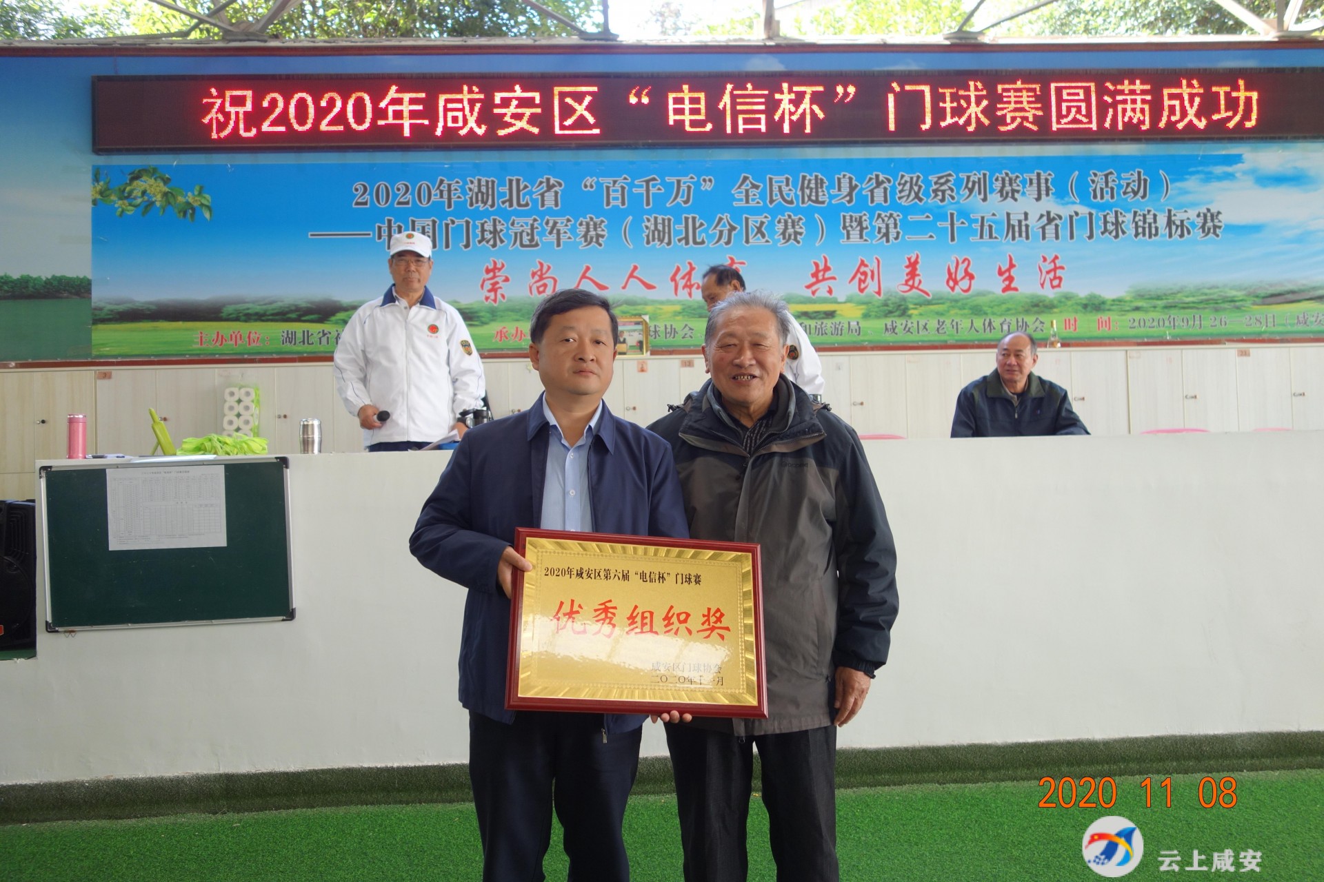 比赛结束后,咸安电信分公司总经理张超光为获胜队颁发奖牌。区门协顾问刘世凤为咸安电信分公司颁发优秀组织奖奖牌。