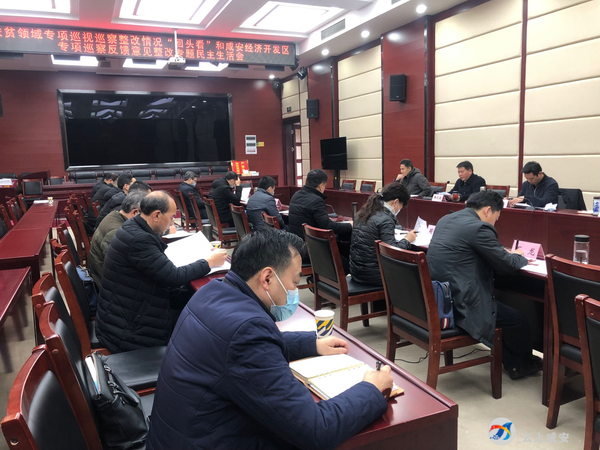 云上咸安报道(咸宁台记者:夏晖)12月18日,区委书记李文波主持召开扶贫领域专项巡视巡察整改情况“回头看”和咸安经济开发区专项巡察反馈意见整改专题民主生活会。区委副书记、区长魏朝东参加会议。