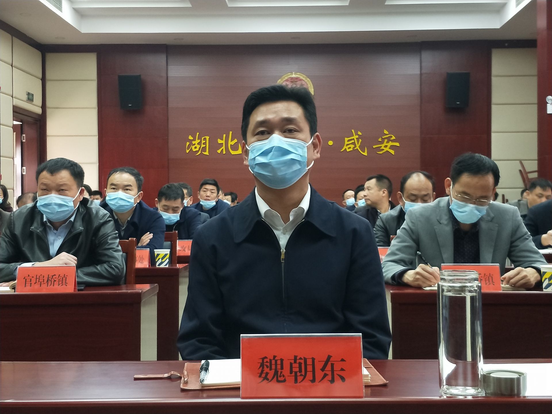 区领导郑奇明、杜新国、何宏辉,各乡镇(街道)及相关单位负责人在咸安分会场收听收看会议。