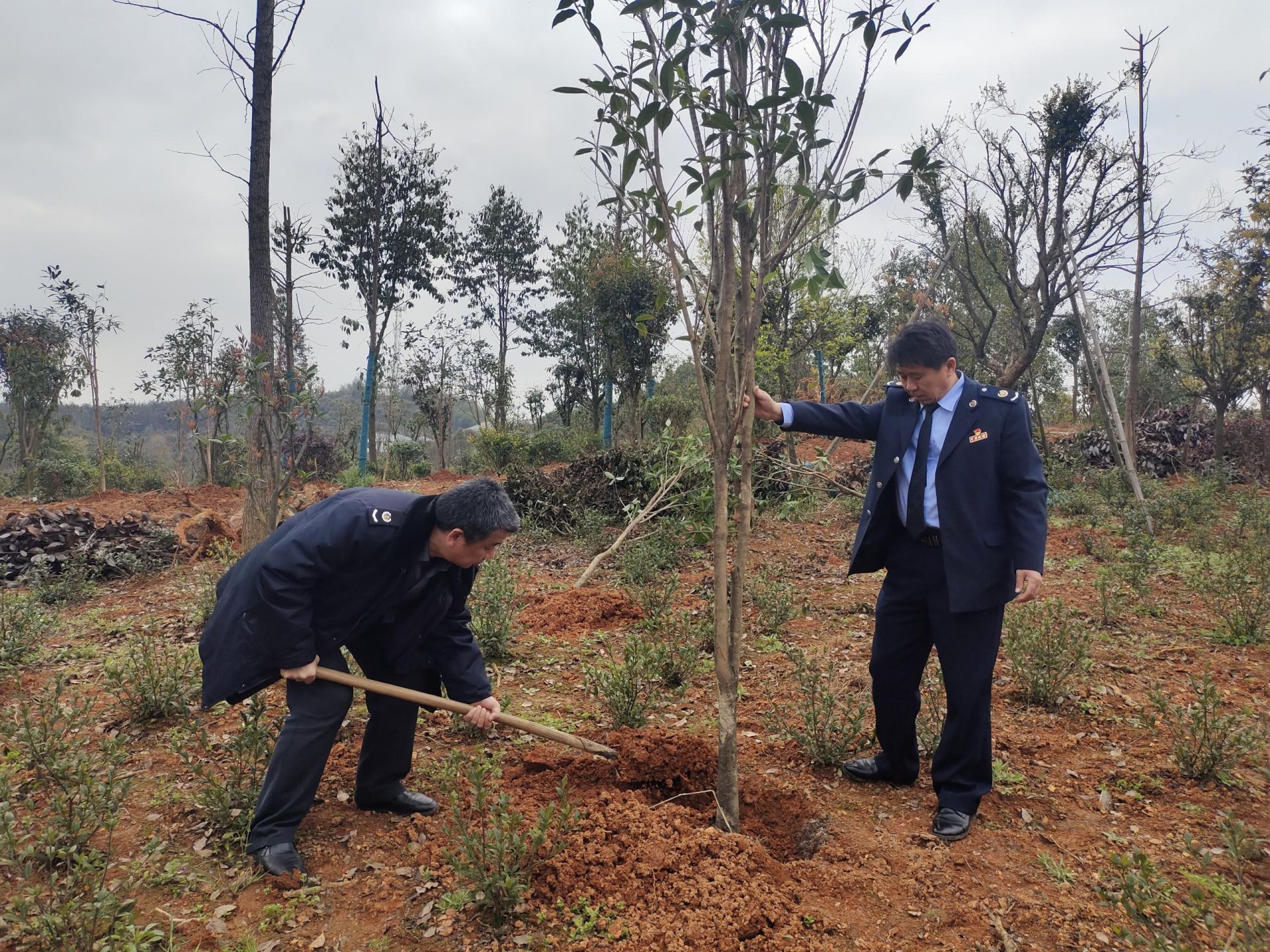 “青山埋忠骨,激励后来人。”参观纪念活动结束后,党员们又来到双龙山国营林场参加义务植树,绿化美化祖国家园,以寄托对先烈们的哀思。