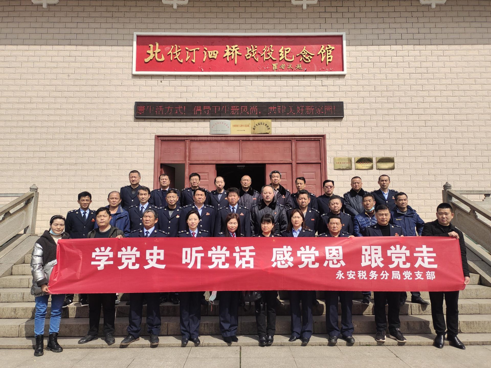 云上咸安报道(特约记者:王冰 通讯员:孙卫平)3月12日,区税务局永安税务分局支部一行36名党员干部,前往汀泗桥北伐战役纪念地,围绕“学党史、听党话、感党恩、跟党走”的活动主题,把第3期支部主题党日活动搬到爱国教育基地和田间地头。