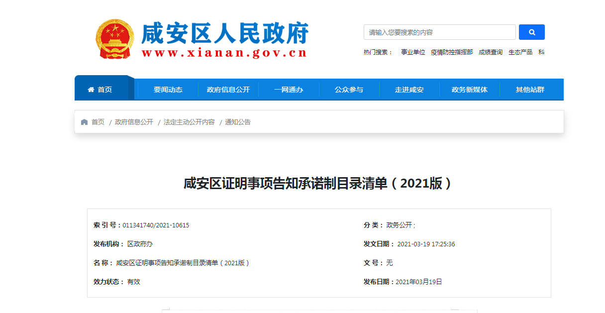 云上咸安报道(通讯员:胡宜 王畅)自湖北开展证明事项告知承诺制以来,咸安区司法局积极行动,扎实推进,狠抓落实,取得了阶段性成效。3月19日,咸安区人民政府网发布《咸安区证明事项告知承诺制目录清单(2021版)》,从制度层面解决了企业和群众办证多、办事难、多头跑等问题,全力推进“减证便民”行动。