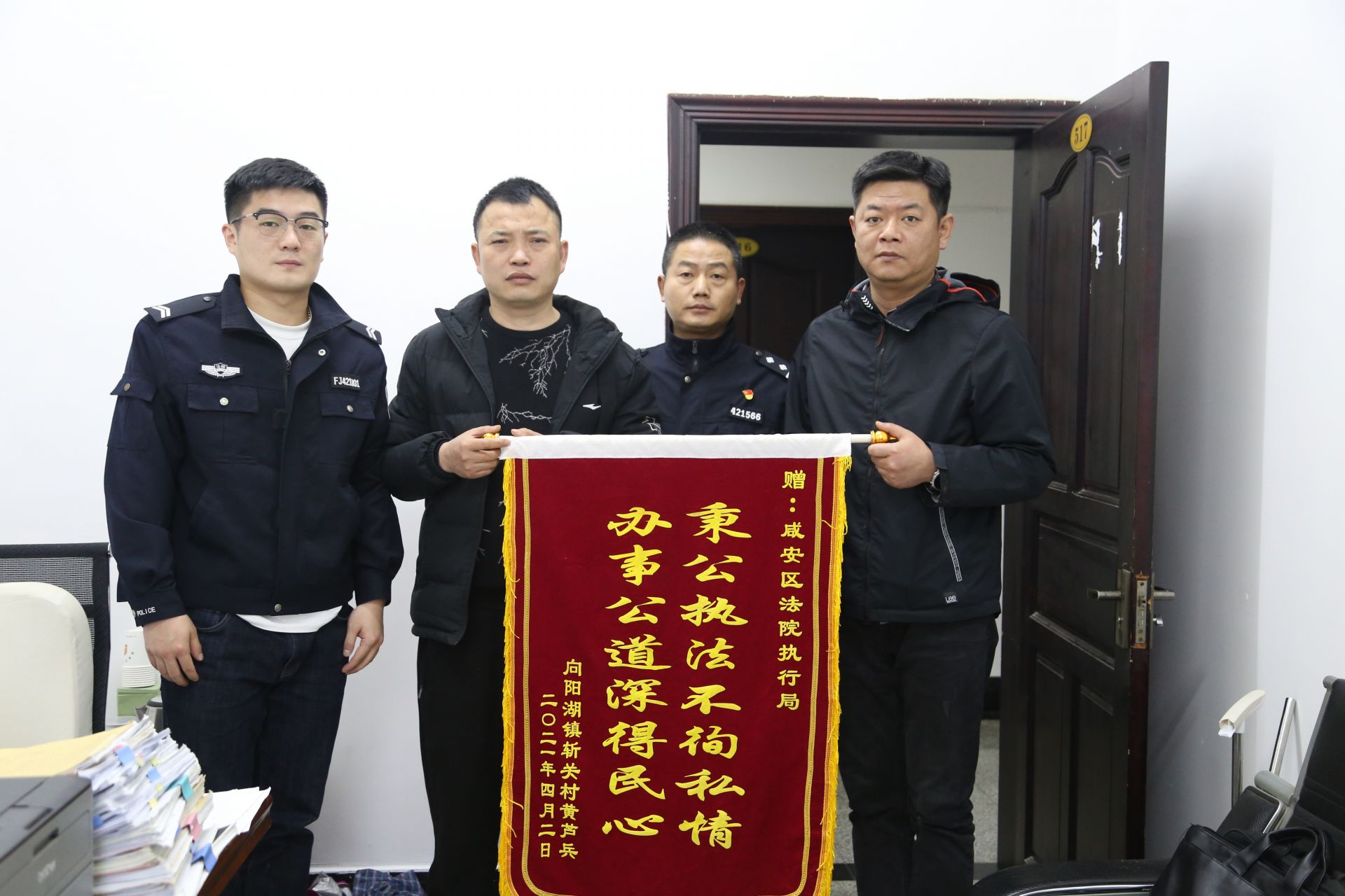 云上咸安报道(通讯员:潘梦玉)“谢谢法院为我主持公道!”近日,一起机动车交通事故责任纠纷案的原告黄先生来到咸安区法院,亲自为执行局执行员刘昌武送上一面锦旗,对他的执行工作表达感谢。