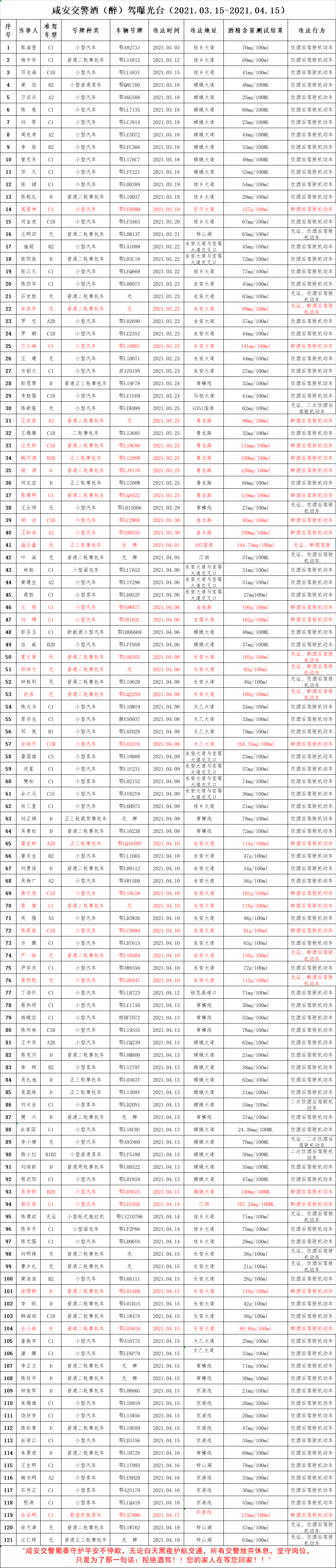 20日,咸安交警公开曝光近一个月的酒后驾驶违法行为人及酒、醉驾典型案例,以此警醒广大驾驶人引以为戒。