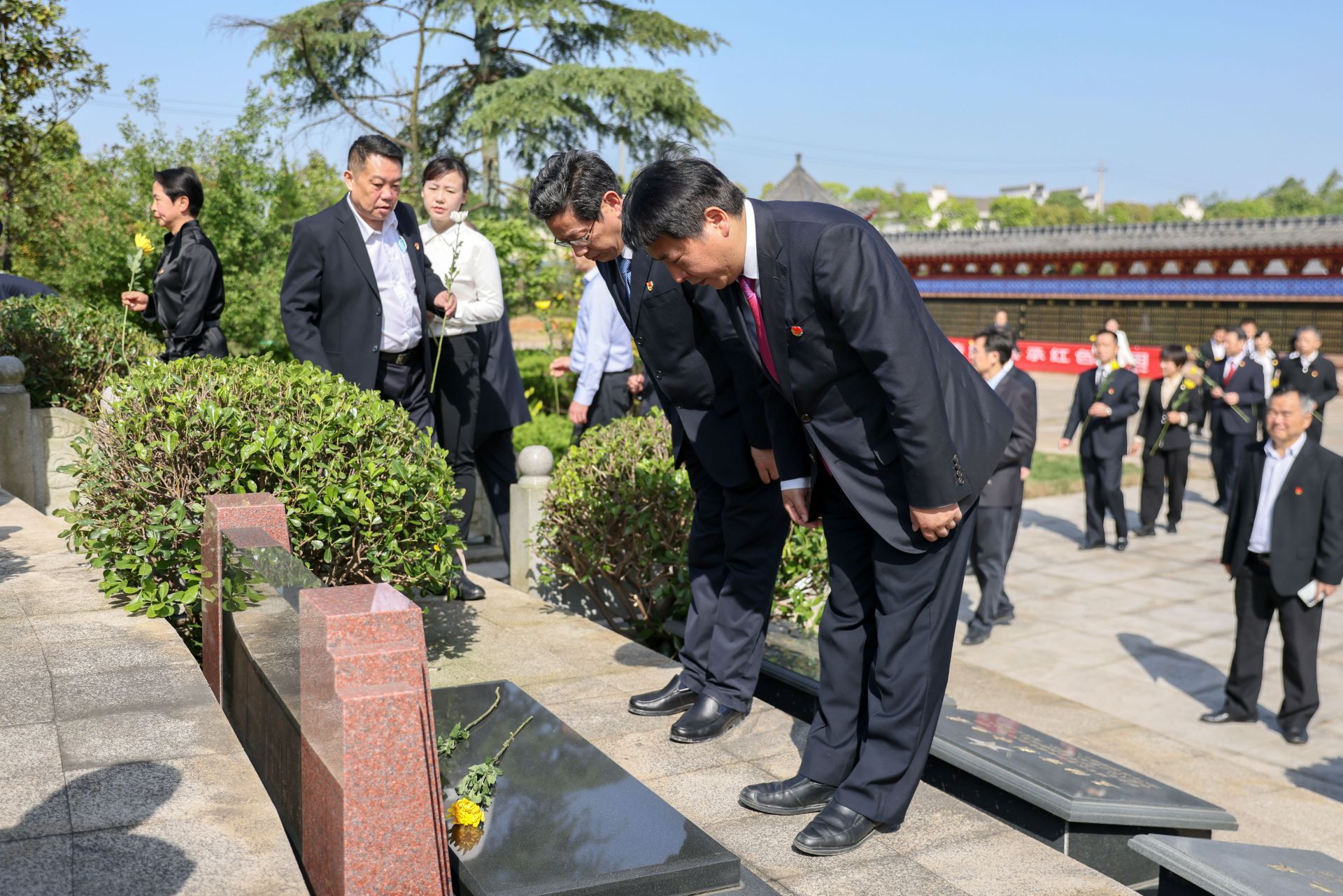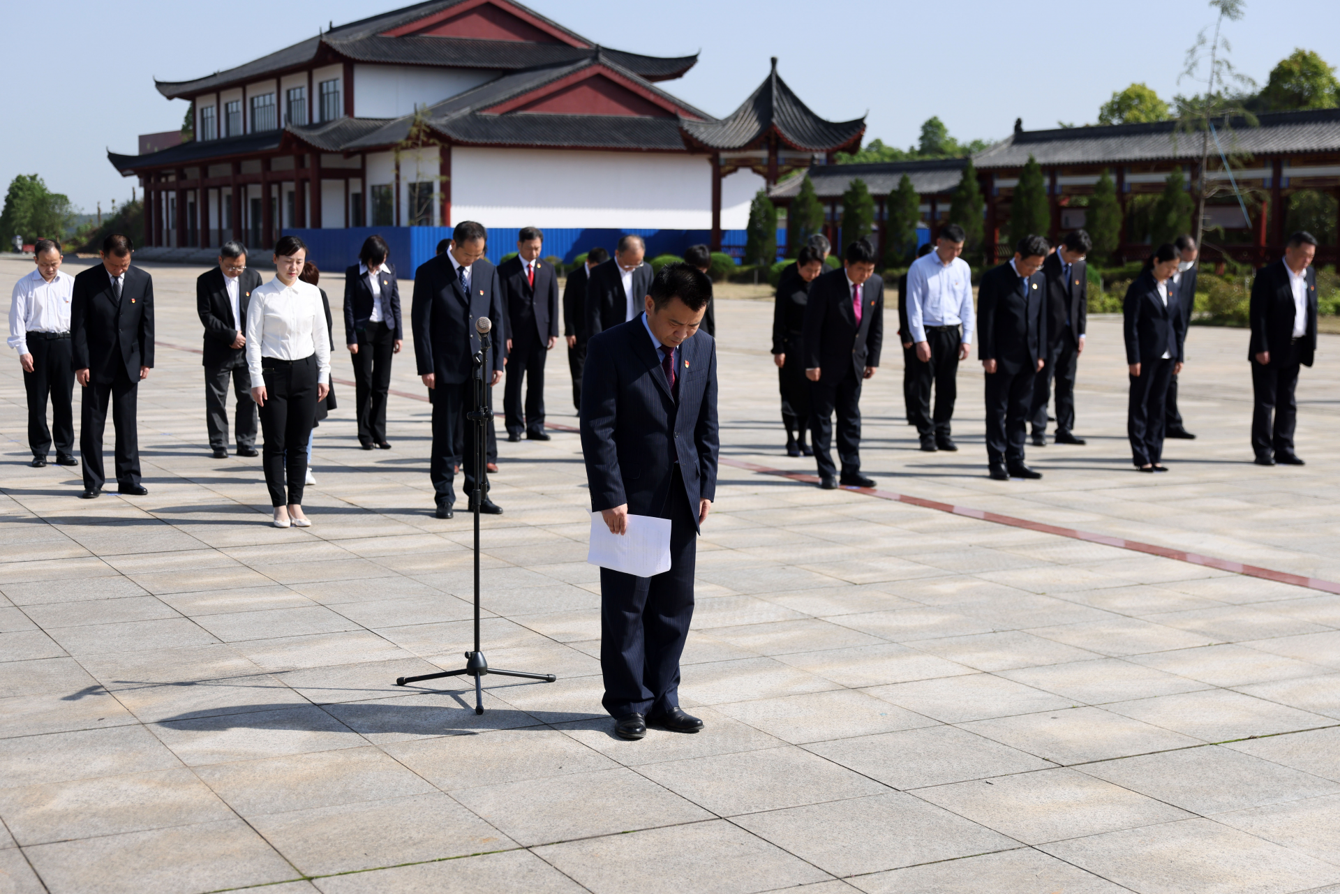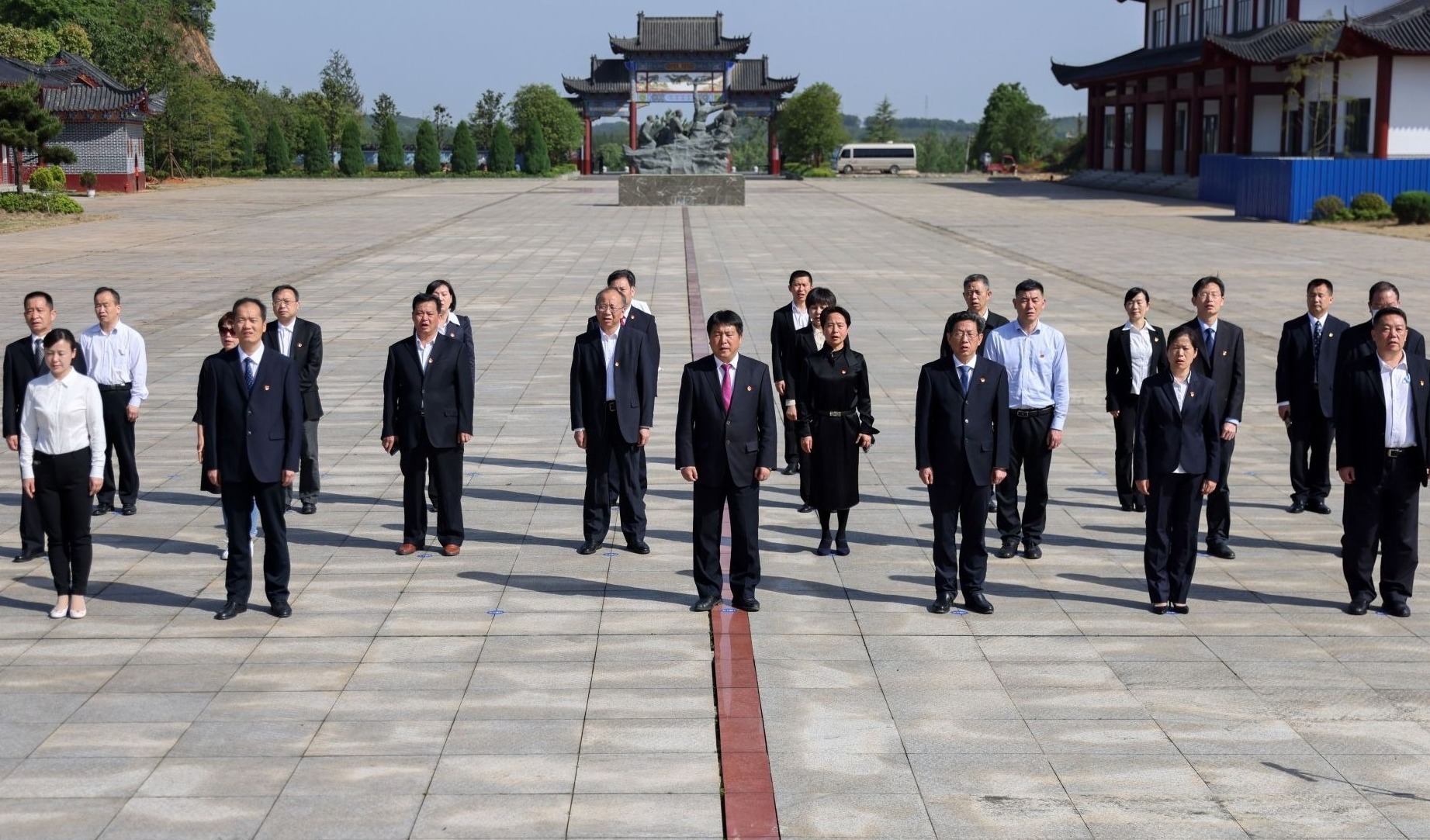 在鄂南烈士陵园,李文波等四大家领导肃立在烈士纪念碑前,现场奏响威武雄壮的《中华人民共和国国歌》;全体人员脱帽,向烈士默哀致敬。