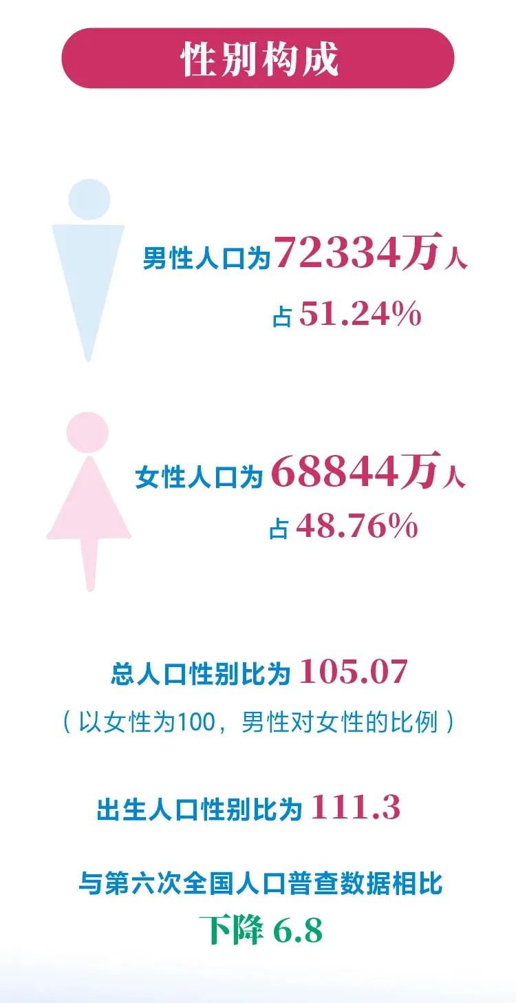 备受关注的第七次人口普查数据近日公布查看详情。数据显示,我国男性比女性人口多出3000余万,于是出现了“将有3000万男性打光棍”的声音。