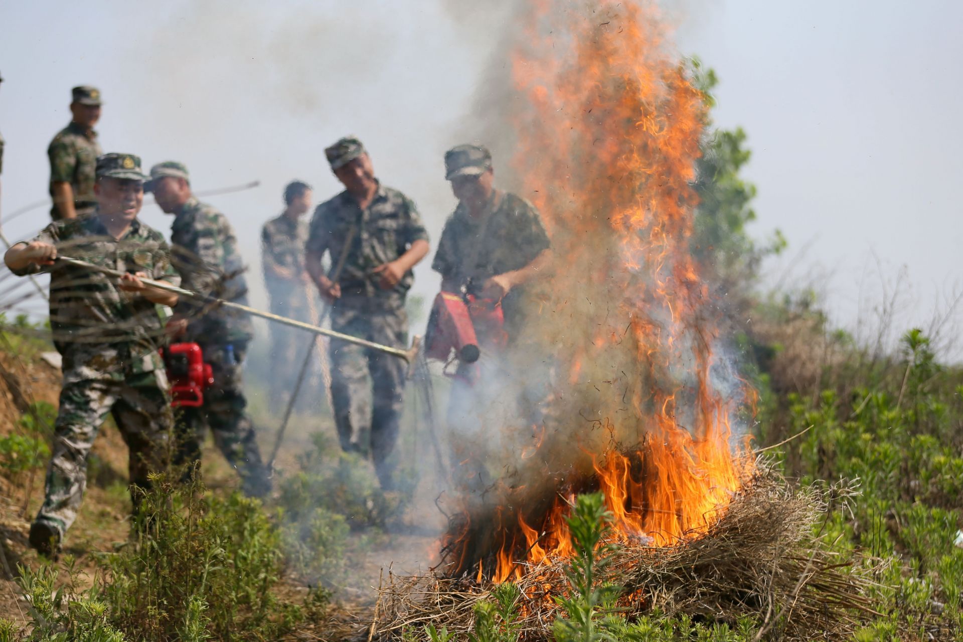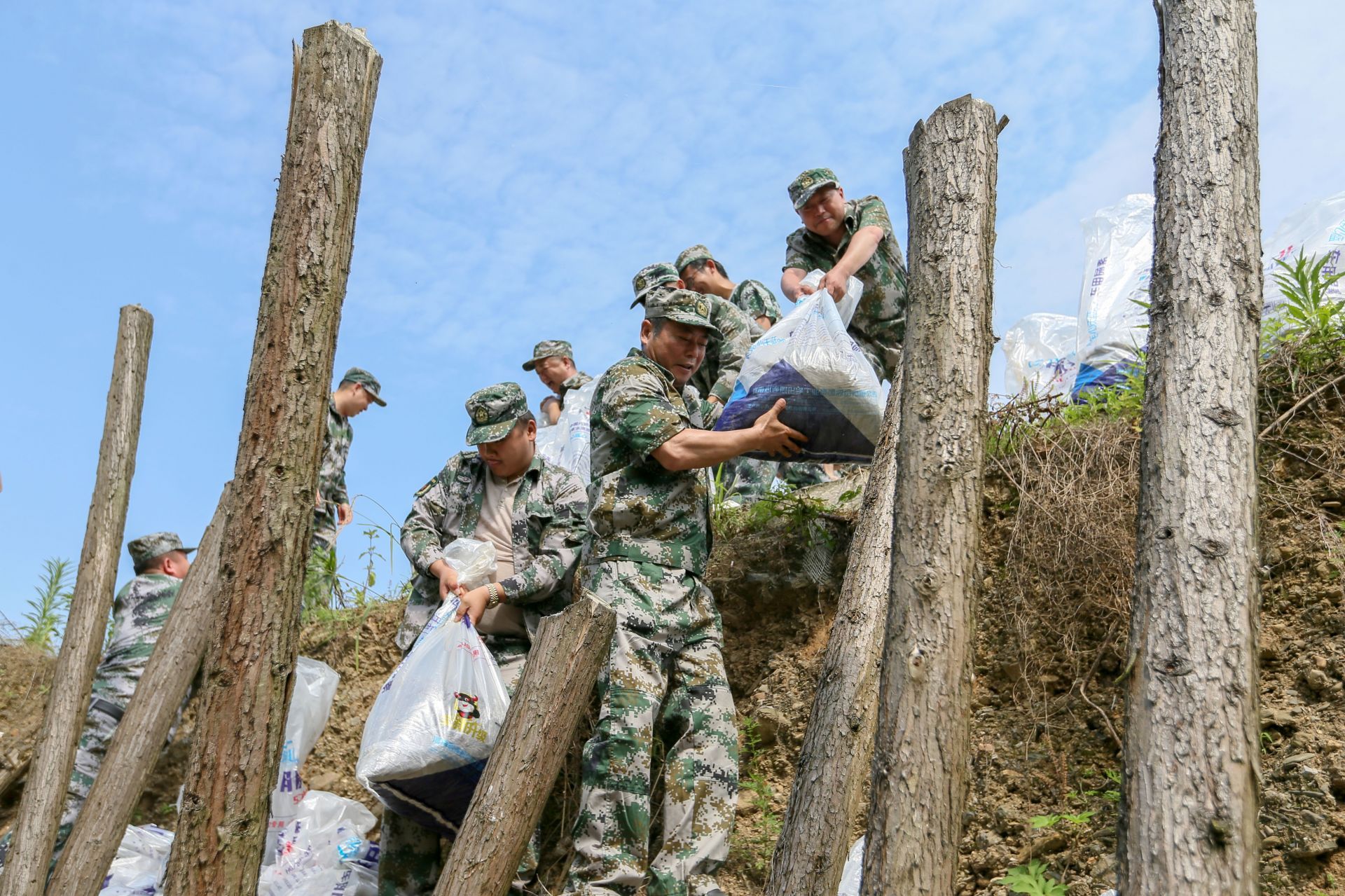 随着指挥人员一声令下,各项演练依次展开:马桥镇仁窝村黄水河堤面临溃堤,100余名抢险队员调集机械,装填沙袋对河堤垮塌处进行抢险;因焚烧秸秆引起山火,防火救援组对山火紧急扑灭;某处突发山洪导致部分群众受困,山洪地质灾害应急组组织救生船转移受困群众;马桥村突发山体滑坡,转移安置组组织周边群众;田地干旱时,物资保障组使用抽水泵抽水缓解旱情。