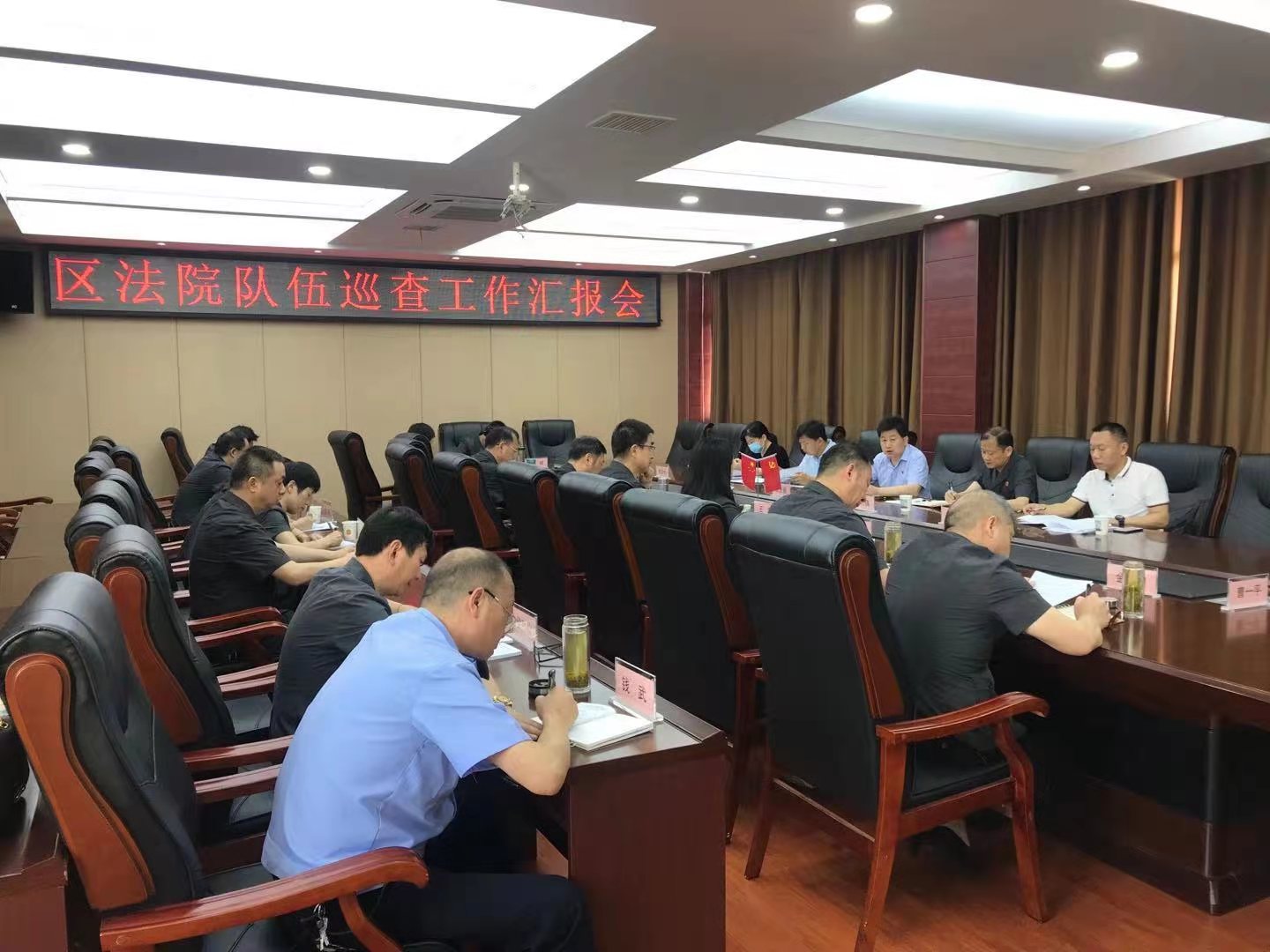 随后,巡查组对班子及班子成员开展民主测评。会后,巡查组与班子成员、部门负责人及普通干警代表展开座谈,广泛听取意见建议,进行问卷调查,并通过与法院班子成员和中层干部谈话,查阅教育整顿工作台账,查看党风廉政建设、组织人事、党的建设、选人用人相关资料等方式对区法院队伍建设情况进行了全方位巡查。