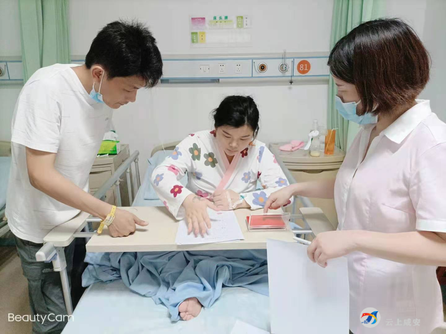 6月17日,咸安区婚姻登记处工作人员来到咸宁市中心医院妇产科二楼病房,为刘先生和他的爱人办理了一次特殊的结婚登记手续。
