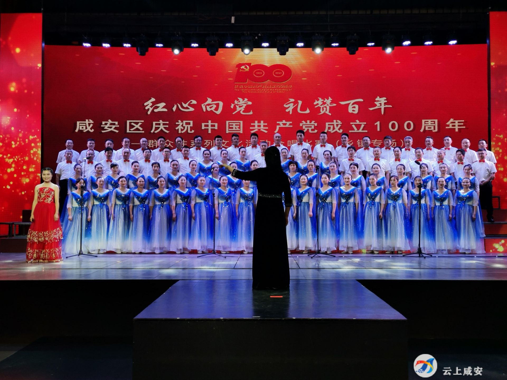 云上咸安报道(特约记者 胡剑芳 通讯员 罗利民)红心向党,礼赞百年。6月25日晚,咸安区庆祝中国共产党成立100周年群众性系列文化活动合唱比赛第一场乡镇专场在咸宁时舞剧场隆重举行,来自咸安区11个乡镇场(街道)的11支合唱队参加比赛。