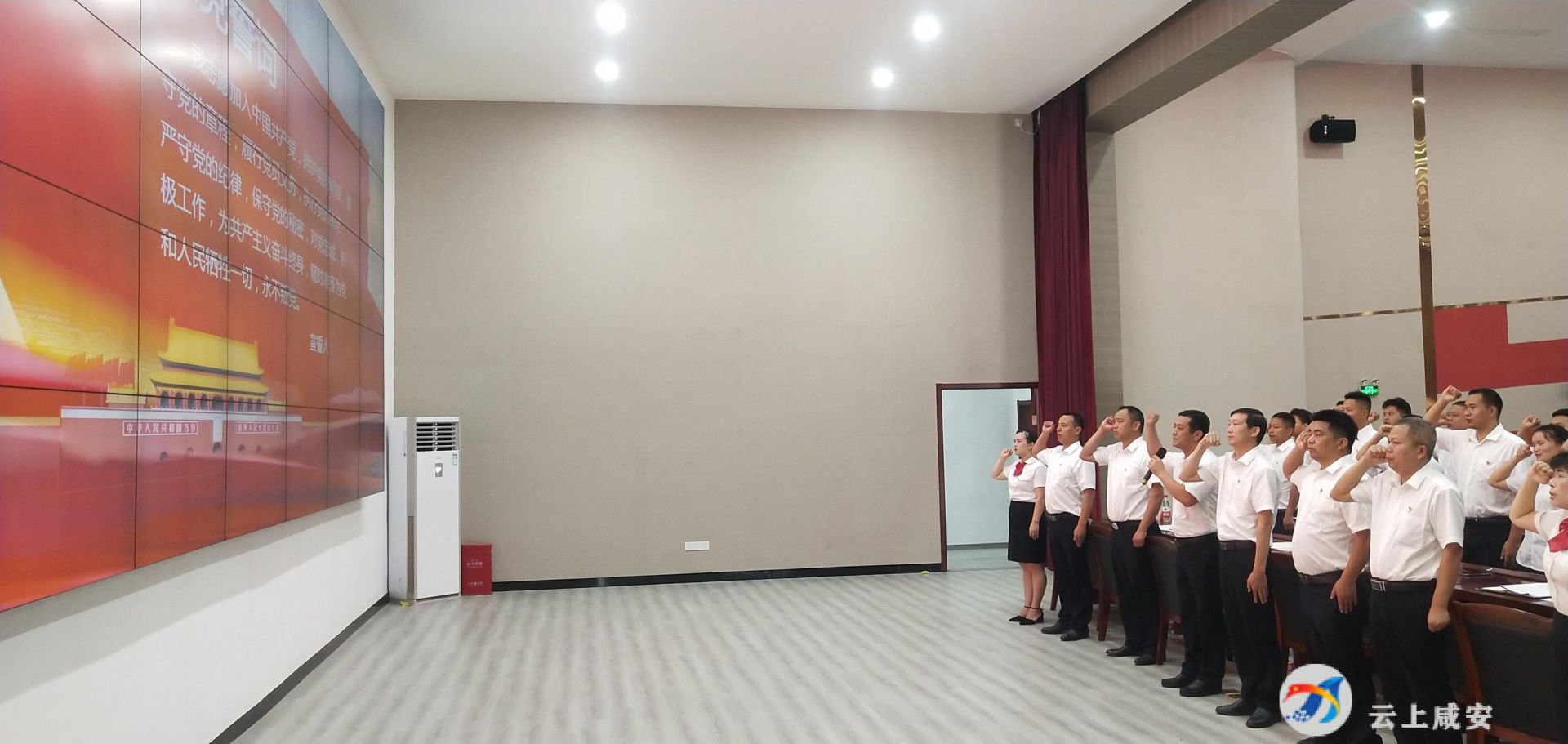 大会上,全体与会党员高举右手,面向鲜红的党旗庄严宣誓,再次接受入党誓词的洗礼,进一步坚定理想信念,坚定入党初心。