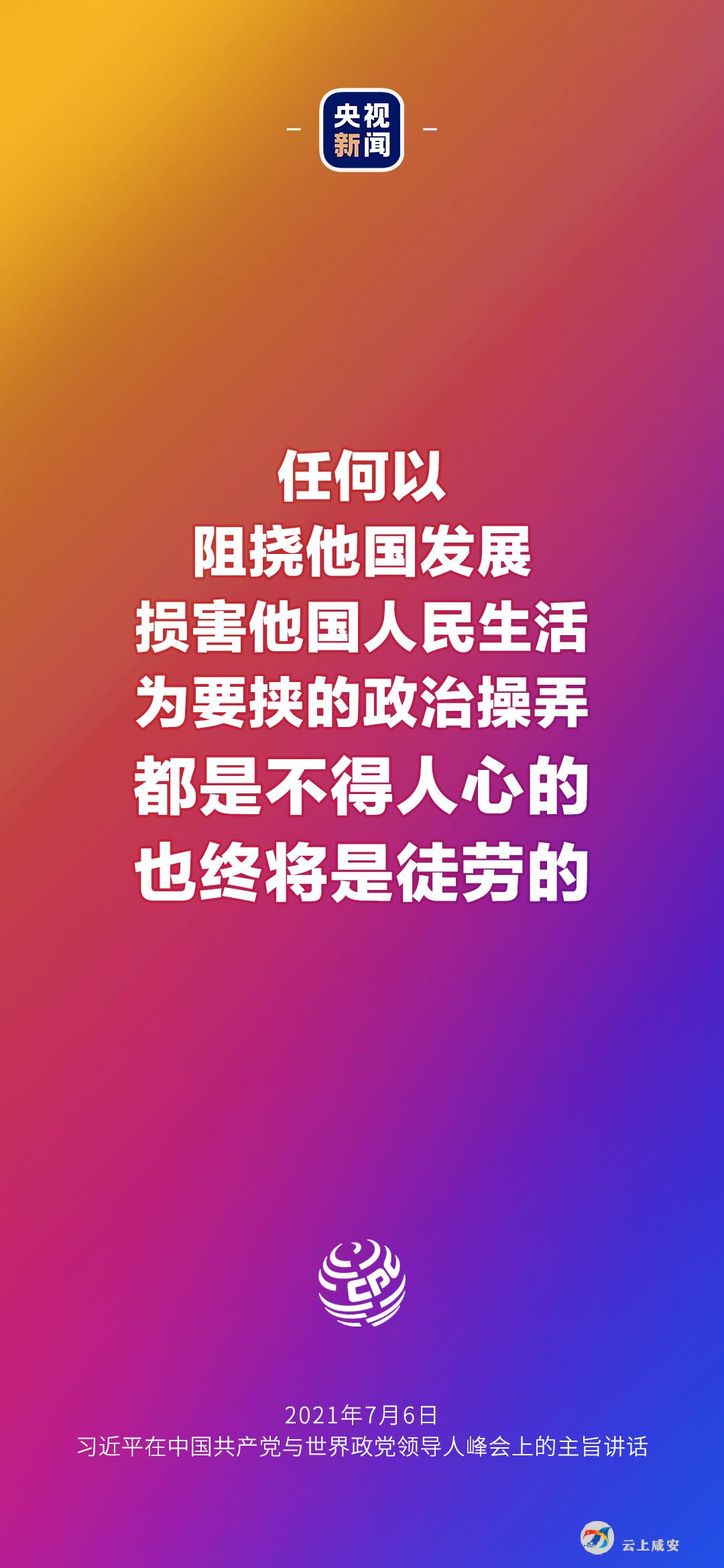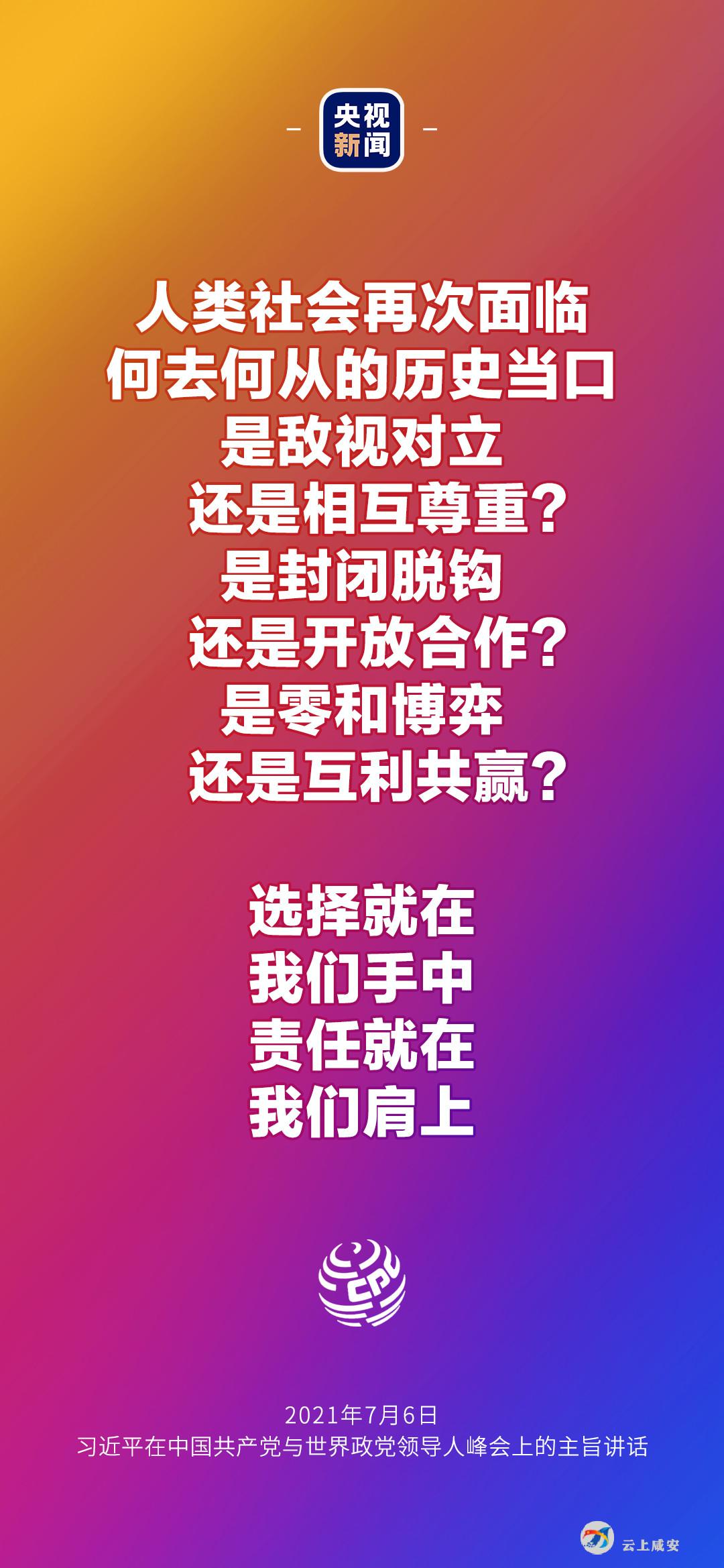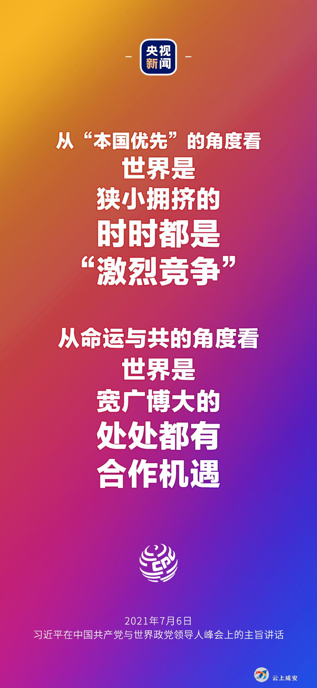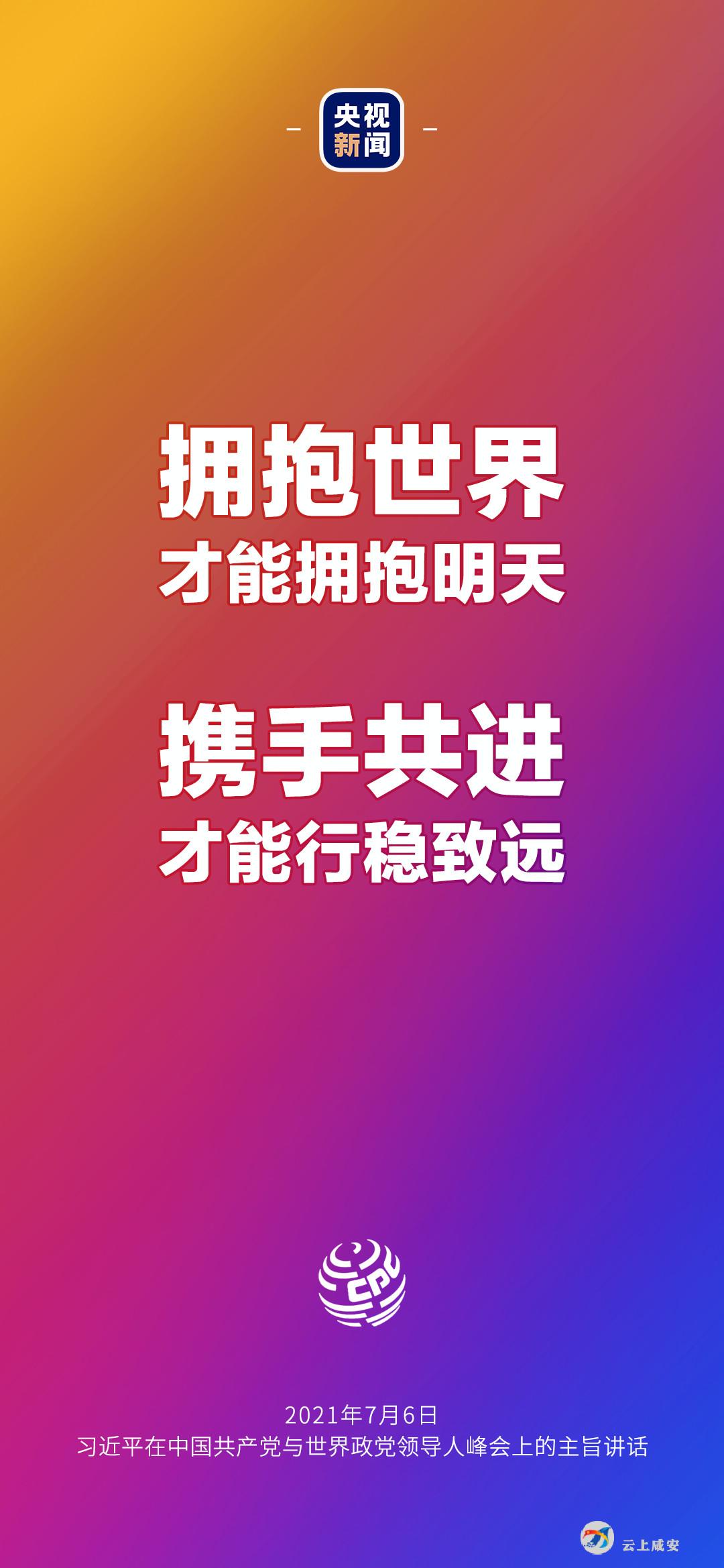 6日晚,中国共产党与世界政党领导人峰会以视频连线方式举行,160多个国家的500多个政党和政治组织的领导人以及逾万名政党代表出席了会议。中共中央总书记、国家主席习近平在北京出席会议并发表主旨讲话,讲话向世界传递了哪些中国声音?看梳理→