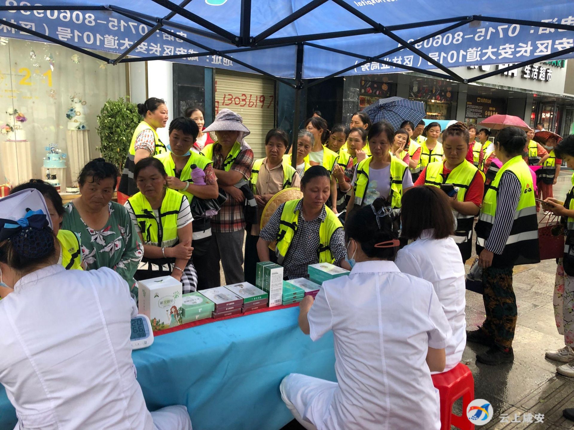 云上咸安报道(咸宁台记者 夏晖)7月17日,在永安大道一处蛋糕店门外,环卫工人排起了长队,依次进行测量血压、脉搏等检查,在检查完毕后领取由咸宁阳光助困协会提供的毛巾和消毒液礼包一份。