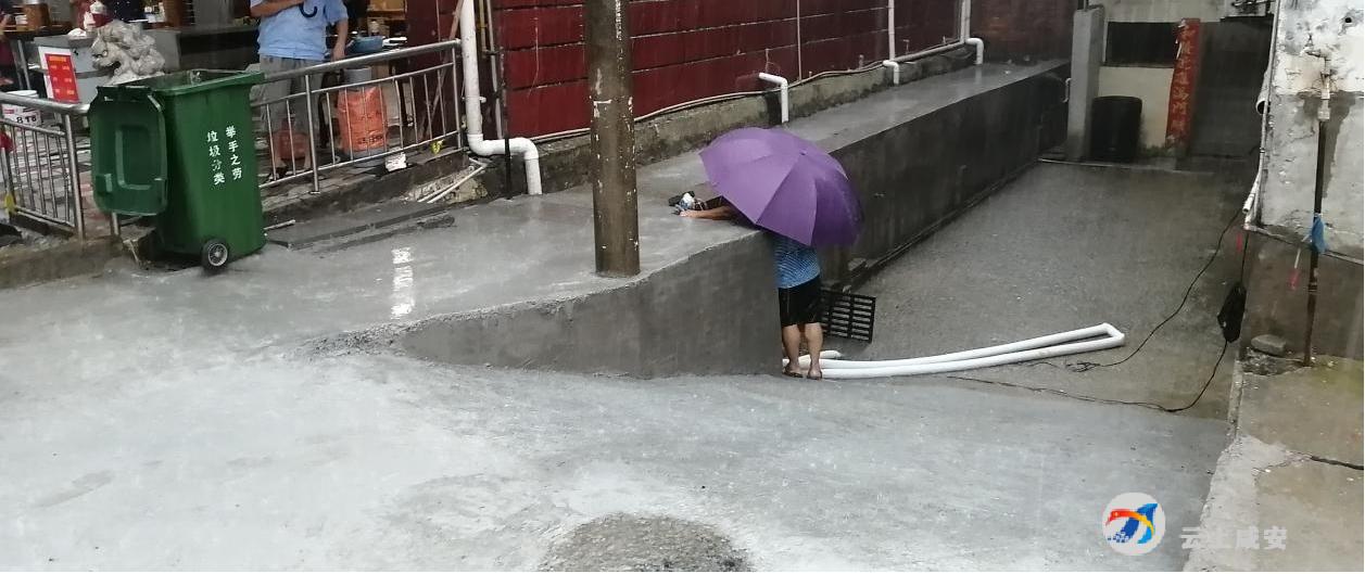 民有所呼,我有所应。了解这一信息后,区城管局快速反应,主要负责人第一时间赶赴现场,联合永安办事处凤凰社区、西河社区、环城社区相关人员和咸宁市规划设计院工程技术人员,商议解决方案,由于该地块存在邻里纠纷,且店铺位于地下室负一层,位置低于路面2米多,地下室下水道无法通向街道主管道,加之原来负一层下水道年久失修,导致排水不畅。