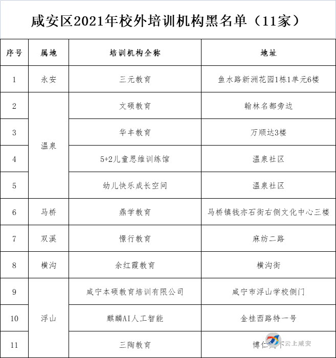2021年7月7日起至7月14日,咸安区校外培训机构专项整治联席会成员单位联合开展了全区校外培训机构专项整治活动。