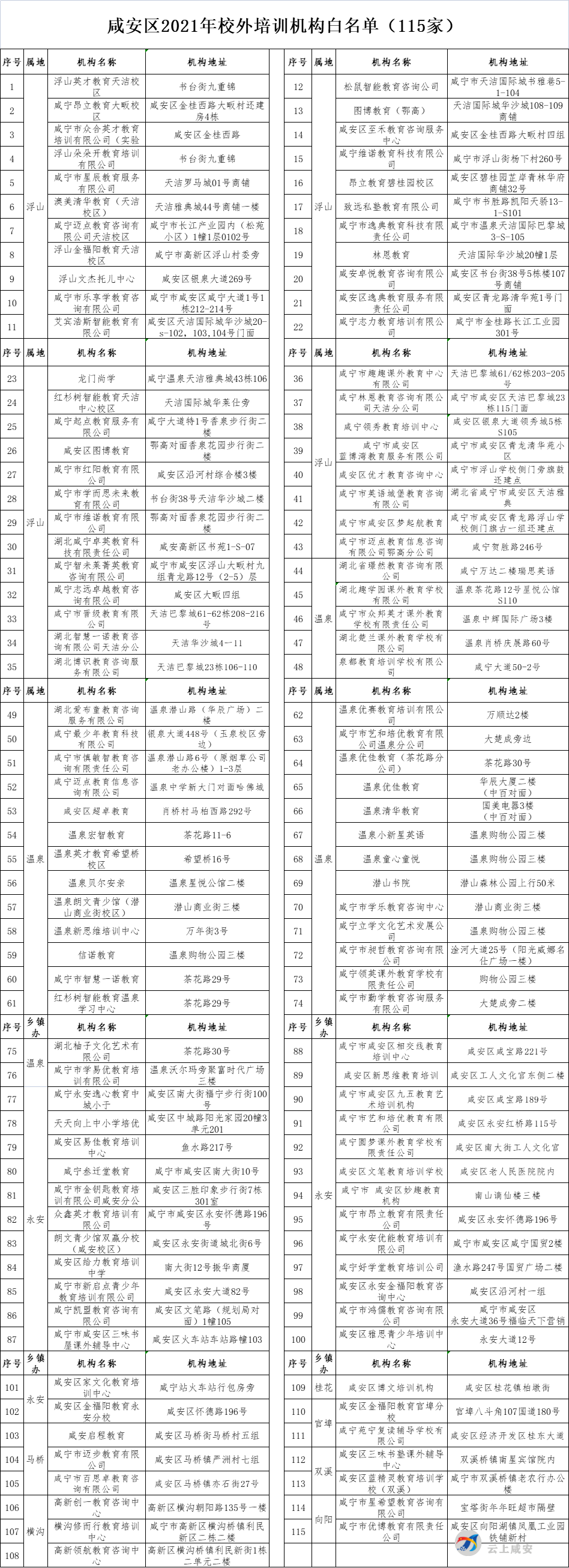 咸安区校外培训专项整治工作联席会