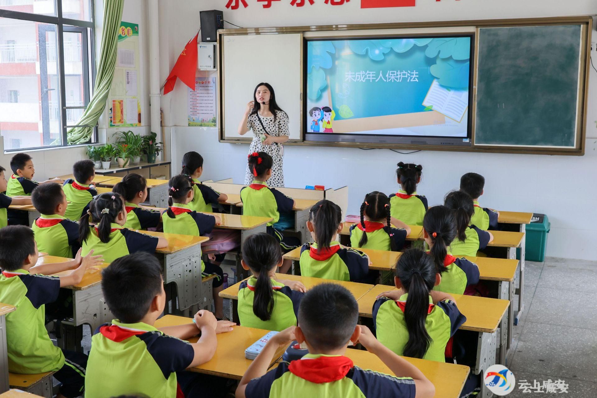 云上咸安报道(融媒体记者 李洋 吴涛)“学生小王因为考试不及格被父亲痛打一顿,同学们,你们认为这种行为是否违反了《未成年人保护法》?”9月1日,在咸宁市第十八小学各班的班会上,老师正在讲台上向同学们举例讲解哪些行为违法。