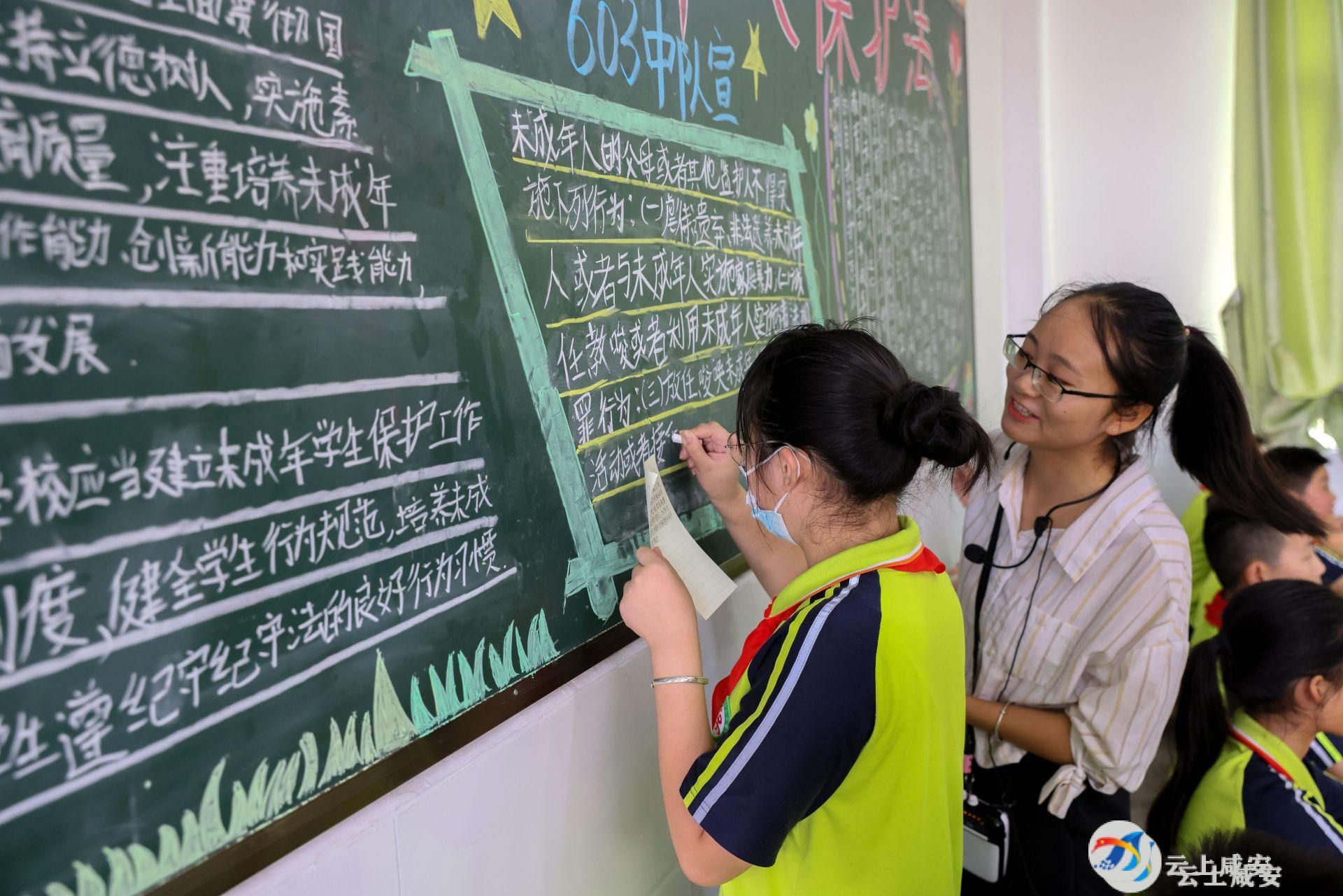 为进一步增强青少年知法、学法、守法的意识,营造关心、重视未成年人保护的良好氛围,当天,咸宁市第十八小学以“法治护航,相伴成长”为主题,通过主题班会、知识竞赛、黑板报、手抄报等形式组织学生学习《未成年人保护法》,鼓励大家加强自我保护和犯罪预防,同时运用法律保护自己,远离不良行为,拒绝校园暴力。