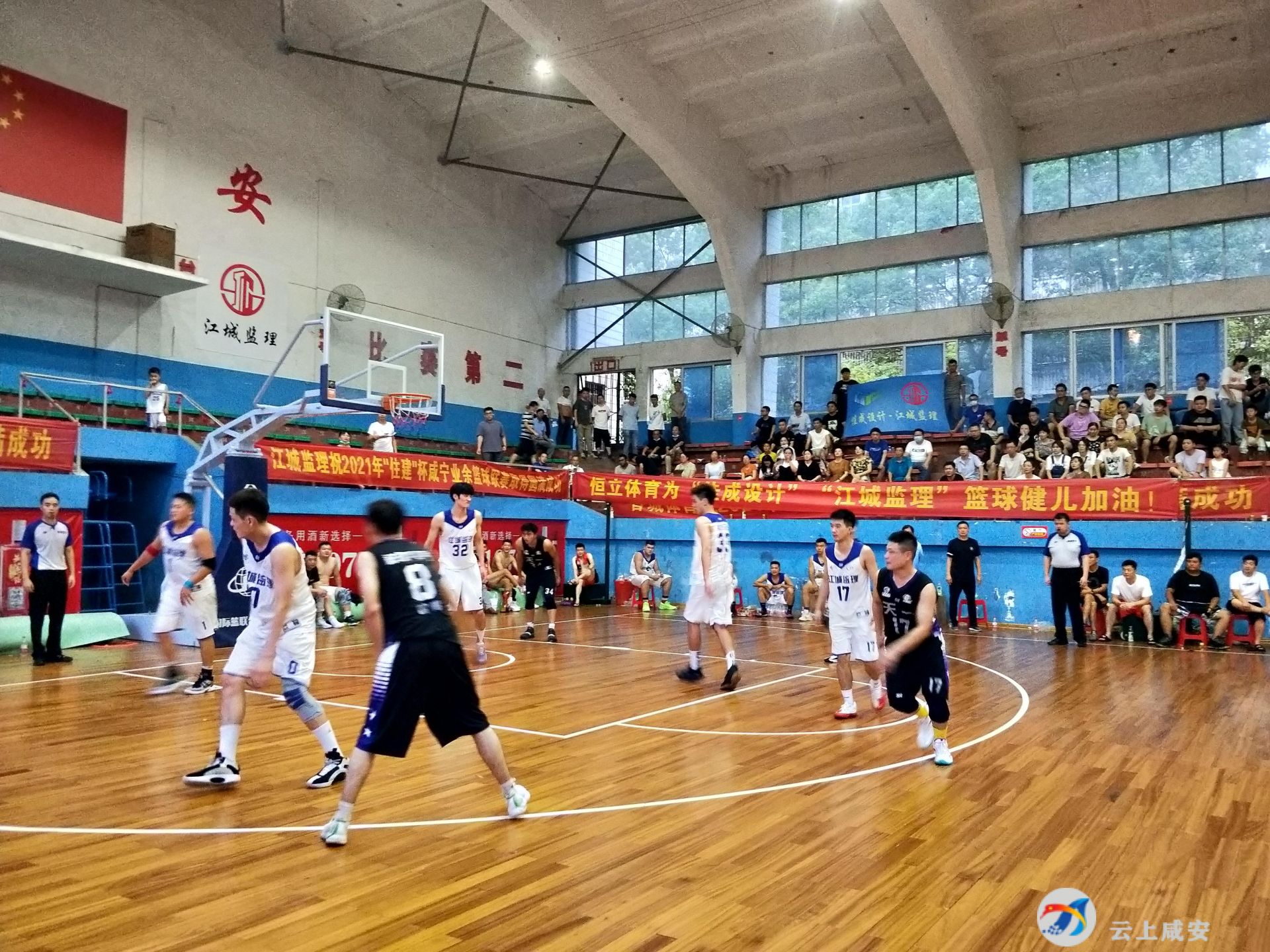 云上咸安报道(咸宁台记者 卫东)9月5日,2021年“住建”杯咸宁业余篮球联赛决赛在巨宁体育馆举办。上届冠军佳成设计队与上届亚军天一队分别战胜自然资源队和自由人队,再度会师决赛。