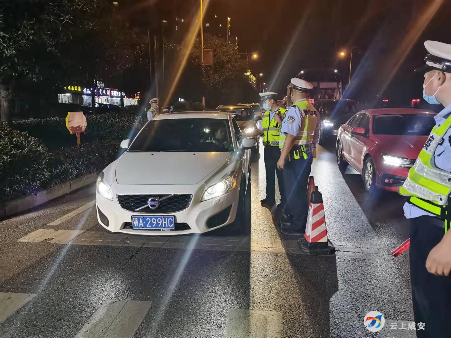 9月14日晚,在咸安区永安大道西河桥段和银泉大道米德尔酒店段,咸安公安分局交警大队民警严阵以待,使用酒精测试仪对过往车辆进行逐一检查,严厉查处驾驶人员酒驾醉驾行为,连摩托车和电动车也不放过。