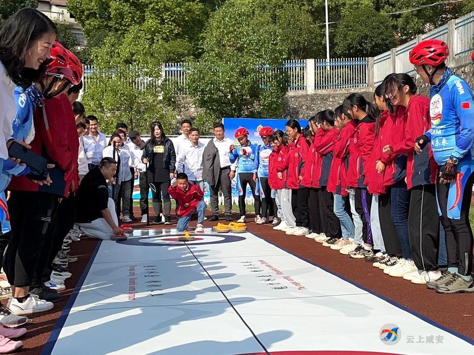 云上咸安报道(特约记者 刘洁 通讯员 郑莉)“进垒!进垒!”10月12日,咸安区向阳湖镇宝塔初级中学的操场上传来阵阵呐喊声。靓丽的背景板、冬奥会运动知识科普展板排列整齐……一堂“特别”的冰雪运动体育课正在进行,原国家冰壶队长刘斯佳现场讲解冰壶运动相关规则及得分要领,并指导学生进行比拼,使整个操场都充满老师和学生的欢声笑语。