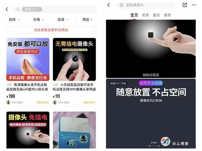 部分二手电商平台仍然在出售微小摄像头。截图