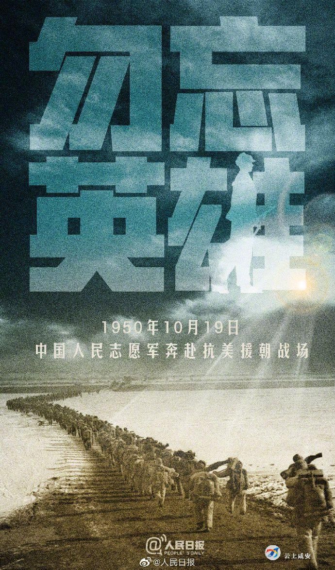 71年前的今天志愿军跨过鸭绿江,奔赴抗美援朝战场。为保家卫国,先后有290万志愿军将士赴朝参战。用胸膛堵枪眼,以身躯作人梯,忍饥受冻绝不退缩,烈火烧身岿然不动…他们说,我们的身后就是祖国。如今,山河无恙、家国安宁,我们永远铭记英雄壮举!
