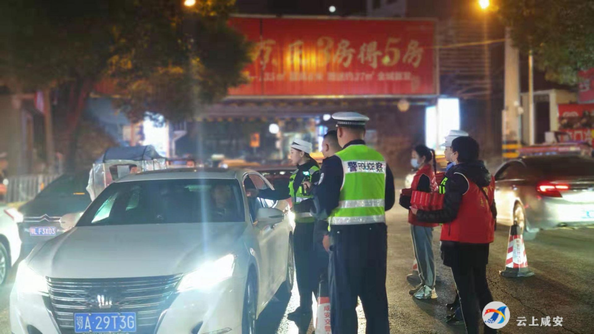 云上咸安报道(咸宁台记者陈宗谱 通讯员 饶继虎)为强化措施推进“零酒驾”创建工作,10月29日晚,咸安交警联合永安街道办事处南大街社区共建共治,利用酒驾专项整治行动契机开展酒驾醉驾主题宣传工作,营造浓厚宣传氛围,形成综合治理能效。