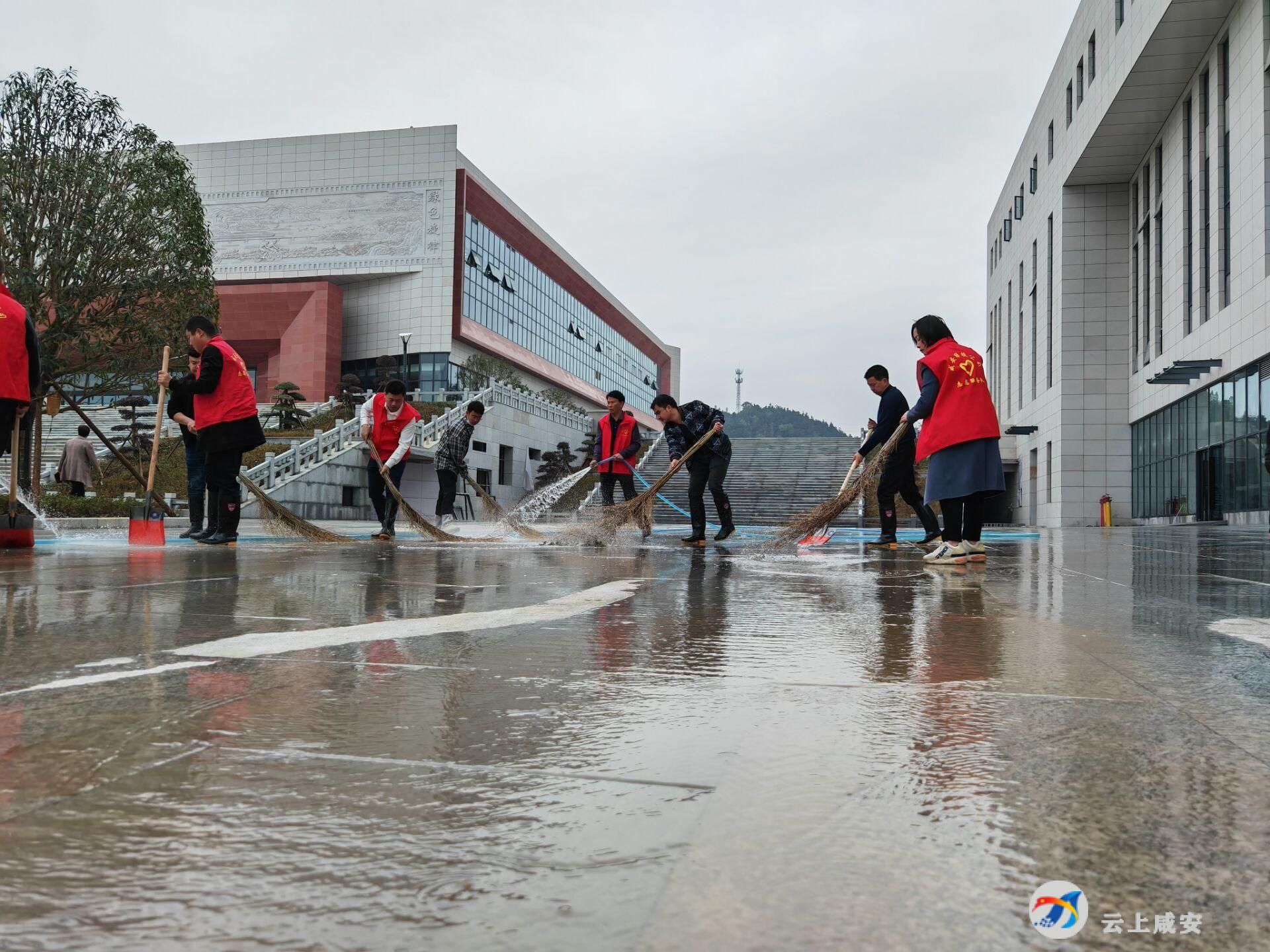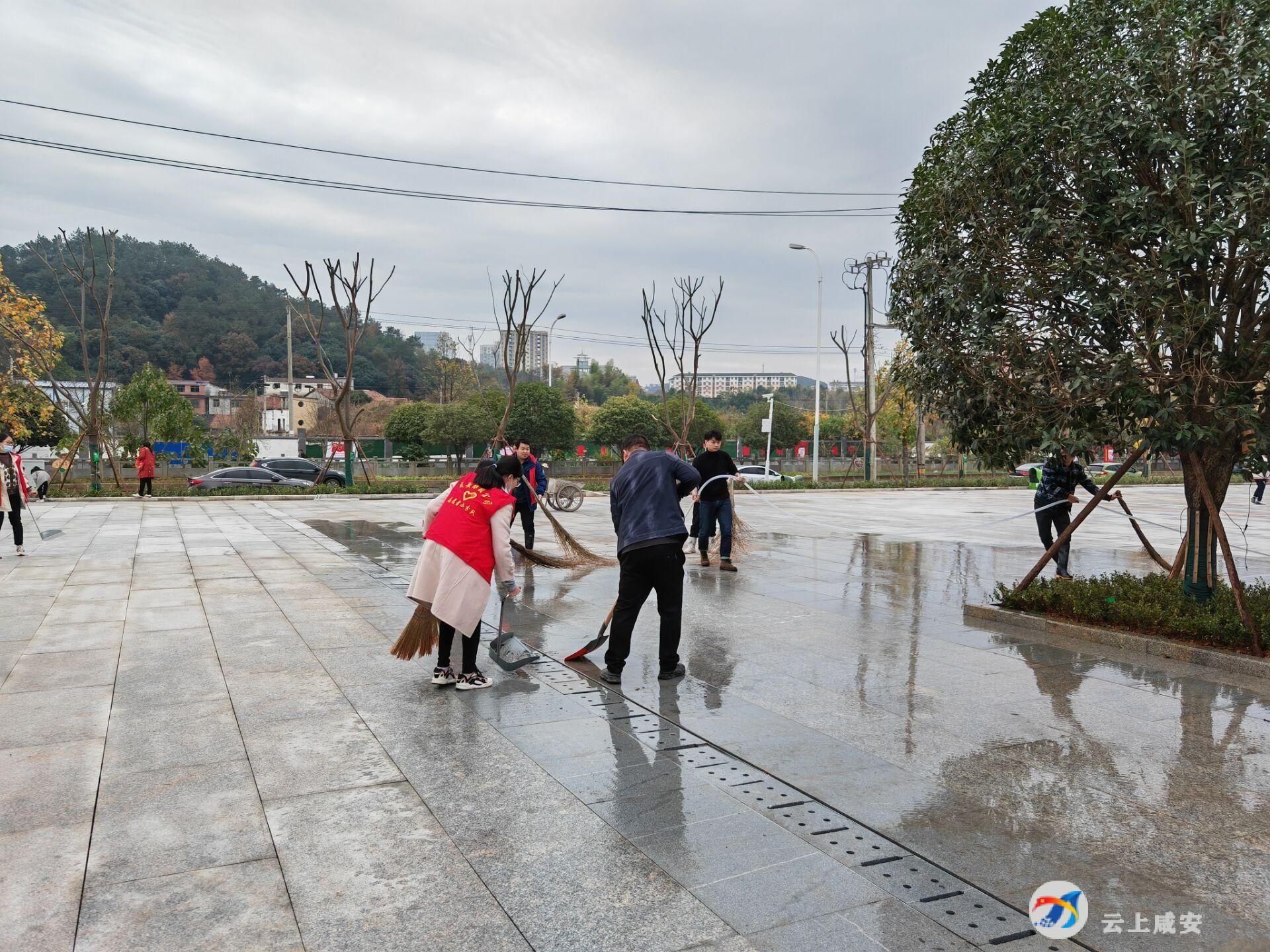 活动中,志愿者们各自分工三五成组,有的负责对地面水泥结块进行清洗、有的清扫地面杂物、有的花坛拾取垃圾,早上寒风虽冷,但是挡不住志愿者活动的热情。