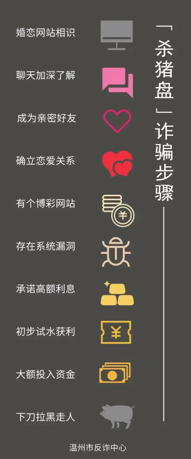 4、网络交友需谨慎,慎防落入“骗心又骗金”的“杀猪盘”诈骗套路。凡是网友自称是“程序员”“技术员”,以“有内幕消息”“有专家老师指导”或者“知道系统漏洞”“稳赚不赔”等理由诱导进行投资、赌博的,都是诈骗!