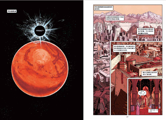 中信出版集团目前也计划用2-3年的时间,给大家带来《沙丘》原著的改编漫画,近期即将出版的《沙丘》漫画第一部,紧跟《沙丘》电影一起上市,让读者借助一张张图画,一帧帧分镜,更轻松地进入沙丘的情节,欣赏每一帧分镜的巧妙分割,给读者带来激动人心的视觉体验,沉浸在这个有史以来最伟大的科幻故事之中。