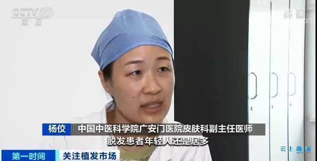 中国中医科学院广安门医院皮肤科副主任医师 杨佼:脱发患者年轻人还是居多,年轻人作息不规律,压力比较大,就会导致头皮的炎症和不健康。