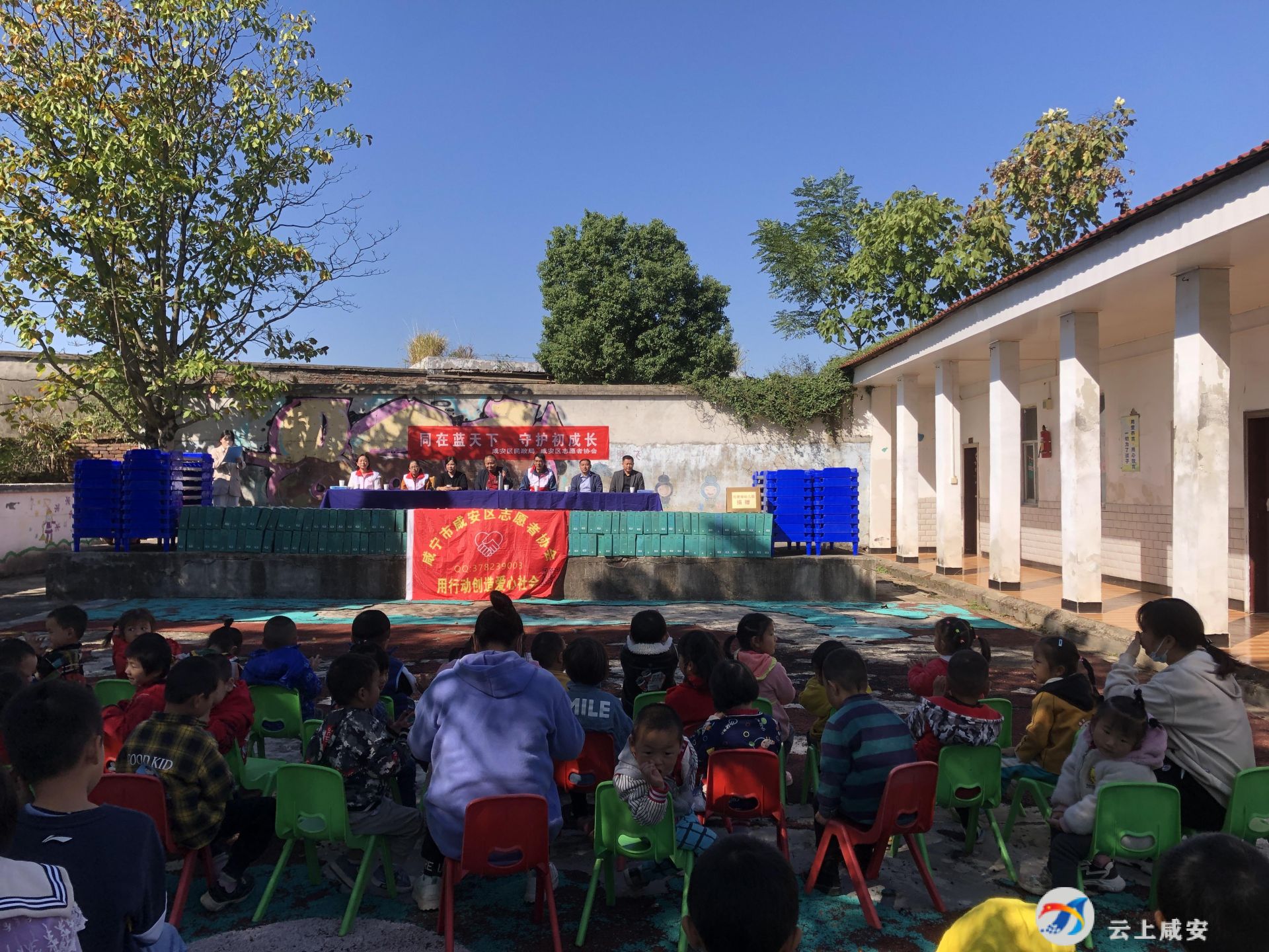 云上咸安报道 “同在蓝天下,守护初成长”。10月11日,咸安区志愿者协会携手咸宁市华源电力有限公司、咸安区玩得福幼儿园的爱心人士前往横沟桥镇杨畈小学幼儿园奉献爱心,捐资助学,为该校幼儿园捐赠33张幼儿床、28套衣服及150箱牛奶。